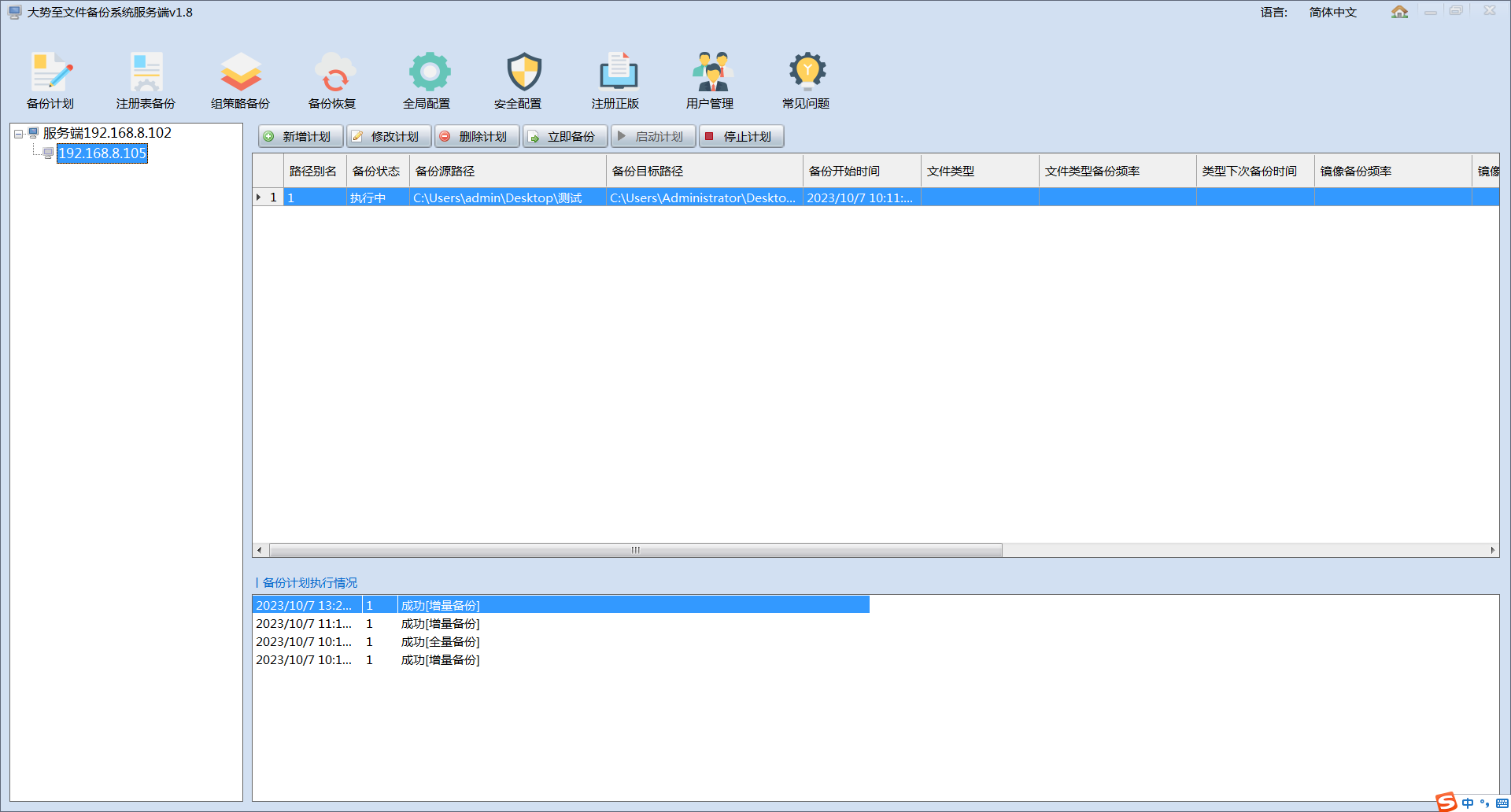 1、支持对服务器文件进行全量备份、增量备份、差异备份,确保数据完整、实时保全。